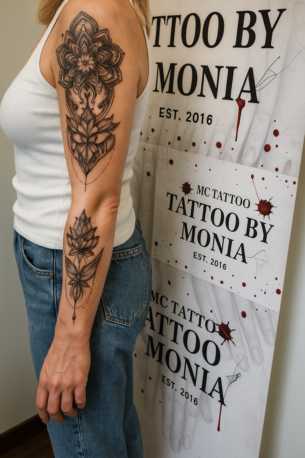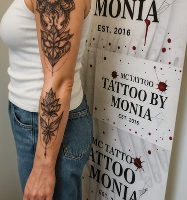Explore Monika's diverse tattoo artistry and transformations.